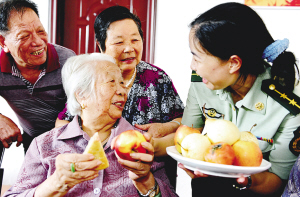 当日,福建省公安边防总队司令部边防拘留审查所官兵为驻地空巢老人送上月饼、水果,并邀请联欢,对他们表达节日的祝福。