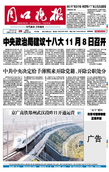 中共中央决定给予薄熙来开除党籍、开除公职处分