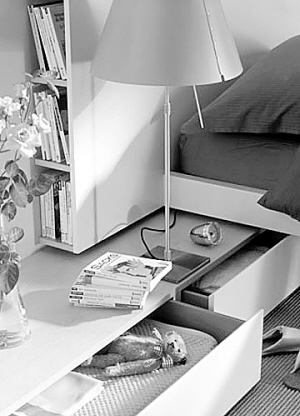 组合家具。如今,两种不同功能相结合的组合家具已成为时尚趋势,并受到小户型房主们的青睐。床具本身与床头柜相结合的多功能家具,既大大节省了空间的搭配考虑时间,又通过其独特的结构巧妙增加了室内的存储空间。