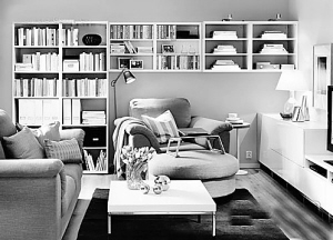 只是晚间收发一下邮件,或者临时需要改个报告,你可以用窄条桌来当书桌用。它的高度在80 厘米左右,人坐在沙发上也能轻松使用。使用完毕,把它挪到沙发靠背后面,还可以是摆放书报杂志的地方。
