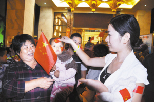 当晚,文昌新卷售楼部装扮一新,数以千计的业主早早来到售楼部门前广场,聊生活,拉家常,其乐融融。大家或参加博饼游戏,或拍卡通全家福,高兴之情溢于言表;大家或手举国旗,拿起笔在“保钓”签名板上郑重写下自己的名字,爱国热情心潮澎湃。现场气氛喜庆而庄重。
