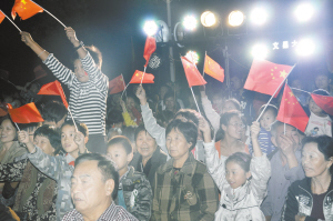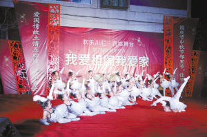 晚8时许,少儿舞蹈《和谐阳光》拉开了晚会的序幕,十多名少儿表演有模有样,颇具功底,让观众眼前一亮。接下来,大家耳熟能详的《红歌联唱》、《红星闪闪》及戏歌《沁园春·雪》赢得观众阵阵掌声。我市著名豫剧表演艺术家江团结表演的《天职》,我省知名歌手演唱的《赞川汇》和《最炫民族风》一次次把晚会气氛推向高潮。最后,演员和台下观众互动,共同演唱《歌唱祖国》,“五星红星迎风飘扬,胜利歌声多么嘹亮……”上百面国旗在现场挥动,嘹亮的歌声响彻云宵,现场的热烈气氛达到了最高潮。整场晚会历时两小时,16个节目给观众留下了难忘的印象。