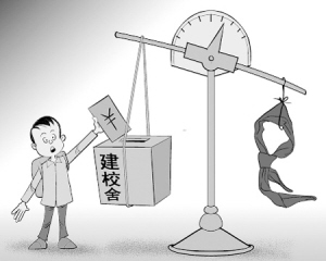 苏州东山镇实验小学新建要花1.6亿元,拨款1.3亿元,还缺3000万元。为补资金缺口,不仅该校老师、学生被要求捐款,连其他学校的教职工、企事业单位都要帮忙筹钱。有家长透露,有的班级还设了捐款最低额,甚至有的班主任称不捐款不给戴红领巾。
