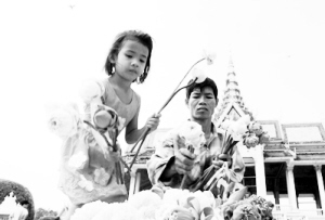 10月16日下午5时许,数千名柬埔寨民众聚集在大皇宫广场前,手举白莲花,低头焚香,沉痛哀悼10月15日在北京逝世的西哈努克。民众身着白衣,胸前佩戴黑丝带,列队向国父画像鞠躬致敬。