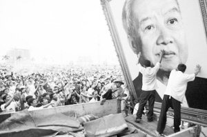 来自皇家农业大学的一位学生说,15日从电视中得知西哈努克去世的消息,十分悲痛。“国父克服种种困难,为柬埔寨争取到了真正的独立。失去他,是整个国家的损失!”他今后7天会每日来到皇宫广场,悼念伟大的领袖。