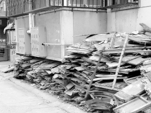 近日,有市民拨打本报新闻热线反映,称新华步行街家属院5号楼、6号楼的天然气管道下堆满了干柴。随着秋季的到来,天气变得干燥,那么多的干柴堆放在那里,一旦引燃后果不堪设想。
