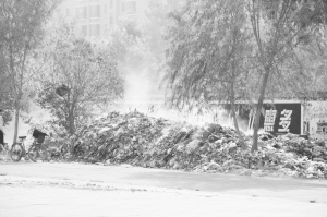 “现在还好点儿。”附近一位居民告诉记者,前两天这里的道路都被垃圾侵占了,“垃圾清运车有一个星期没来了,不知道咋回事。”