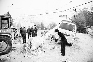事故发生后,周口供电公司和市公安局有关人员第一时间到达现场,对现场进行清查,并对此路段交通进行管控,防止超高车辆碰触电线。经过施工人员的紧张工作(如图二),18时许,受损区域恢复供电。通讯员 魏可 摄