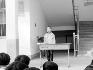 据了解,该校为促进学生的全面发展,校长杜杰亲自讲授国学课,聘请专业的国学老师指导学生朗诵,在朗诵中增加了学生的知识,在朗诵中开启了学生的智慧。图为比赛现场。