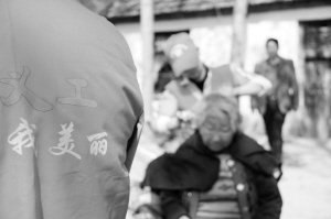 图三:“义工儿女”在为91岁的空巢老人师红英剪头发。
