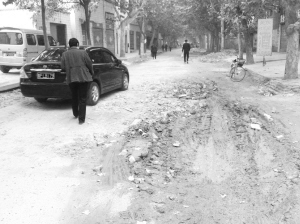 当日,记者来到该路段看到,确如陈先生所说,路面坑洼,有些大坑还存有积水,很多在此经过的车辆都放慢了速度,不少居民路过此地都显得十分小心。记者在一段长五六米,上面仅用泥土简单铺的路面上看到,路面一半还有沥青路面,而另一半则简单地铺了层土。“每到下雨天,这条路更是不好走。”陈先生说,平时,这里有很多老年人推着老年车散步经过这里,可如今道路变成了这个样子,老人也不敢再走这里;附近还有一个幼儿园,每天接送孩子的家长也很多。希望有关部门尽快修整破损的路面。
