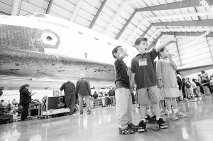 当日,美国“奋进”号航天飞机在加利福尼亚科技中心向公众开放。新华社记者 杨磊 摄