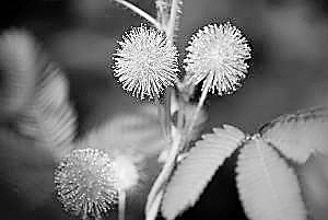 突然有一天,含羞草悄悄开花了。我看到的时候,惊讶、高兴地叫了起来。“一朵、二朵、三朵、四朵,”