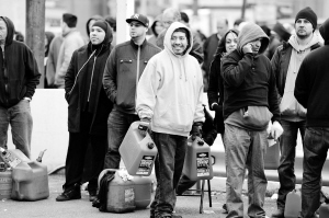 现在,纽约和新泽西地区“汽油如黄金般宝贵”,所有的加油站都出现长长的车龙和人龙。即便是关闭着的加油站也是如此,因为当居民听到传言燃油即将输送到加油站,就会涌到那里。