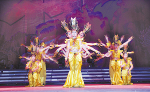 于2005春节联欢晚会上被大家熟悉的舞蹈《千手观音》,在这次演出中被来自北京残疾人艺术团的聋哑演员们演绎得无比优美动人(如图),演员们每一个动作,都牵动着在场观众的心。