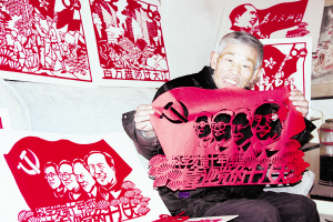 11月7日,现年61岁的周口市川汇区退休职工熊克俭以“喜迎党的十八大”为题材,用传统的剪纸方式,表达迎接中国共产党第十八次全国代表大会胜利召开的喜悦心情。图为熊克俭老人在创作剪纸作品《科学发展十年辉煌 喜迎党的十八大》。