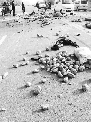 两车昨晨相撞 红薯滚落一地