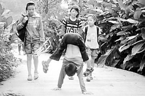 9月17日媒体报道了10岁男孩颜玉宏“下半身瘫痪,4年倒立走上学”的感人故事。