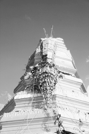 这是11月11日在缅甸北部地震震中德坯珍镇拍摄的一座被毁坏的佛塔。
