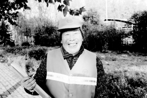 两年前,经人介绍,我做了钟点工。刚开始,我只是清理庆丰东路(市政府大门附近)两边绿化带里的杂草。后来,领导看我干活实在、认真,加上东新区需要环卫工,我就顺利穿上了这身环卫服。现在,我每天的工作除了清扫路面外,还负责维护绿化带里的花草。每月有了这700元的收入,我心里可高兴了。