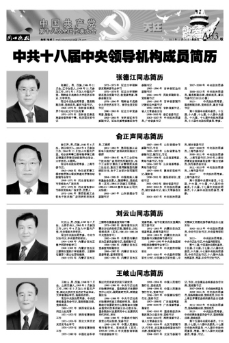 中共十八届中央领导机构成员简历