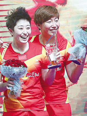 新华社上海11月18日电(记者姬烨 朱翃)中国羽毛球公开赛18日进行了五个单项的决赛,在伦敦奥运会消极比赛风波后首度参赛的于洋/王晓理,由于对手中途退赛而成功卫冕。正处在调整期的中国羽毛球队也以四金收官,唯独缺少了男双金牌。