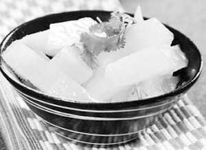 妈妈把几个拳头大的萝卜洗净,切成萝卜片,然后又把这一片片的萝卜切成条状,片薄如纸、条细如丝。妈妈把这细如丝的萝卜条放在一个小铝锅里,放上适量的精盐来回揉搓着。本来细细的萝卜条还有些硬巴巴的,经过盐腌手揉,这些萝卜条就跟面条似的柔软劲道,然后被妈妈堆在盘子里,这就是妈妈说的萝卜丁。我放下手中的作业,捏几根萝卜丁尝尝,微微有点儿咸味。妈妈说:“帮我把酱油拿来。”以前炒鱼时,妈妈会放好多酱油,整个锅都黑乎乎的,没一点儿美感。可是妈妈做萝卜丁时,只在萝卜上滴了几滴酱油。妈妈说:“放上盐了,就不用倒很多的酱油,上上色就可以了。”我低头一看,先前白白的萝卜丁稍稍红了一些,色泽有些鲜艳。妈妈又对我说:“你帮我把醋拿来。”我把酱油瓶放到橱柜里,又把醋瓶递到妈妈的手里。