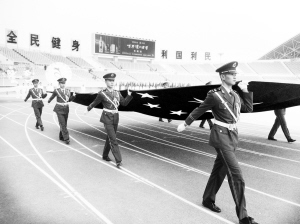 当日下午,参加彩排的工作人员早早在市体育场集结待命。14时许,伴随着雄壮的音乐,彩排正式开始,8名护旗手身着军装、迈着正步,护卫鲜艳的五星红旗走在队伍的最前列,第一个通过主席台(如图)。随后,会旗、吉祥物、会徽在仪仗人员的护卫下,依次通过主席台。紧随其后的是彩旗方阵,该方阵由120名男大学生组成,他们身着统一服装,手举红旗,迈着整齐的步伐展现了良好的精神面貌。鲜花方阵由120名女大学生组成,她们手拿鲜花,下着白色长裤,上着红色运动衣,紧随彩旗方阵之后整齐地走向主席台。而后,裁判员方阵、各县市区代表团、市直代表队的举牌引导员也进行了彩排。接下来,大型文艺演出《盛世龙腾·周口颂歌》也进行了最后的排练。