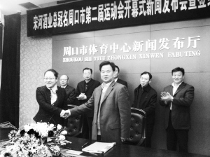 11月19日上午,市体育中心召开新闻发布会,宣布宋河酒业总冠名周口市第二届运动会开幕式。 晚报记者 李伟 摄