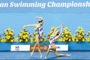 本报综合消息 当地时间11月18日,2012年第九届亚洲游泳锦标赛在阿联酋迪拜结束了花样游泳项目最后一个比赛日的争夺。蒋文文/蒋婷婷获得双人自由自选冠军,中国队获得集体自由自选金牌,至此中国队包揽了本次亚锦赛全部七金。