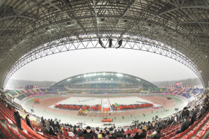 本报讯 周口人终于拥有了自己的大型体育场,终于可以在大型的体育场里举办自己的运动会!第一次3万人体育盛典、前所未有的5000人文体演出、刷新历史的72支参赛队伍和20个比赛项目……这一切的一切都让周口人情不自禁地骄傲和自豪。尽管初冬寒意阵阵,昨天下午的周口市体育场里依然火热无比、激情无限。15时起,近3个小时里,周口市体育场正式启用暨“宋河杯”周口市第二届运动会开幕式奏响了一曲壮美之歌。
