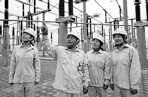 戴上安全帽,刘卫东带领记者走入设备区,巨大的变压器、粗大的电缆线、一排排硕大的绝缘电瓷瓶,一个个“止步,高压危险!”的警示牌,场区空气中持续“磁磁”的放电声,无不让人感到神秘而心生畏惧,“不用害怕,这声音是高压正在对空气产生放电,也叫电晕。你看,这些架空线路的高压线是在为周边像文昌、孟营、北郊、西华泛区的变电站共计12座110千伏变电站输送电量,值班室24小时轮岗,任务就是日夜保护线路,排除安全隐患,一旦有问题及时断开线路,预防事故扩大,将损失降至最低。”据悉,该站担负着川汇区、西华县等区域供电,是周口电网较为先进的一座重要变电站,承担了川汇区三分之二的供电任务,平时日供电负荷20多万千瓦,顶峰期曾达36万千瓦。“都说电老虎,所以时刻不敢马虎懈怠”。