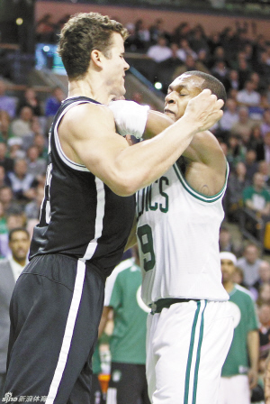 本报综合消息 北京时间11月29日,NBA赛场出现不和谐的场景。在东部一场强强对决中,凯尔特人主场与篮网的比赛进行到第二节双方爆发了冲突。在这场“斗殴”中,主要参与者篮网的克里斯·亨弗里斯、杰拉德·华莱士,以及凯尔特人的拉简·隆多均被罚下。