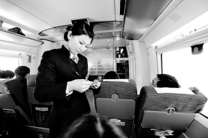 记者看到,一等车厢每个座椅下方都有三眼充电插座,记者拿出随身携带的苹果手机充电器为手机充电,很好用。据介绍,该充电插座也可为平板电脑、笔记本电脑等工具提供充电服务。二等车厢则是每排座椅设有一个充电插座。