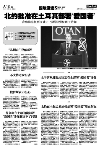 北约批准在土耳其部署“爱国者”