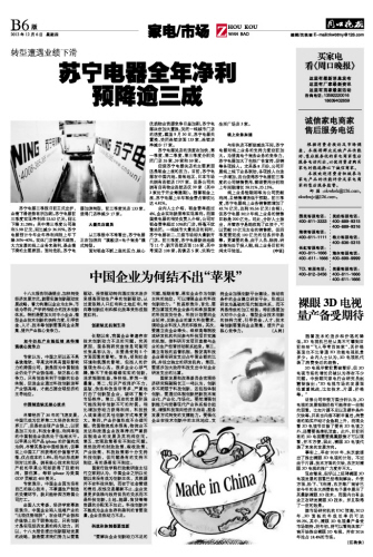 苏宁电器全年净利
