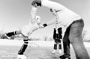 冬季来临,在辽宁省沈阳市,每天都能看到许多市民在公园的冰面上滑冰、溜冰车、打陀螺,尽情享受着冰雪之趣。