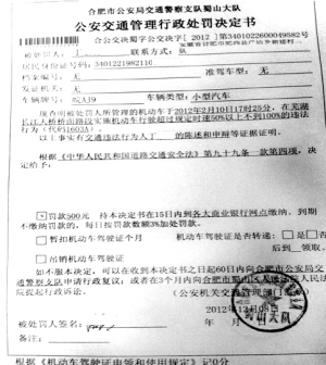 小丁是合肥一家公司的员工,他告诉记者,他们单位的一辆车有70多次违章记录,由于违章记录太多难以处理,原本今年5月就该年检的车一直没有年检,听说交罚款可不扣分,公司立即派他到交警队接受处罚。“这下好了,交了罚款就能年检了。”小丁告诉记者,他自己的车这次也“占了很大的便宜”:今年2月10日晚,他在芜湖长江大桥上超速50%不到100%,12月8日下午,他拿到的处罚决定书上写着:根据《中华人民共和国道路交通安全法》第九十九条:给予罚款500元的处罚决定书。这份处罚决定书的最下方写着“根据机动车驾驶证申请和使用规定记0分”。而一边的一位工作人员告诉记者,“超速50%应该被吊销驾照,合肥交警大赦违章司机,交500元罚款就行了。”记者询问这是为什么,这位工作人员说:“为了迎接明年就要实施的新规定。”
