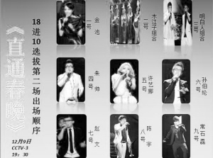 本报综合消息 12月9日,央视年终综艺盛宴《直通春晚》迎来第六场直播选拔,九组选手争夺年终10强的最后5个名额。