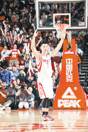 林书豪在终场前41秒快速突破之后上篮得手,平了生涯得分纪录,但为时已晚,马刺用罚球牢牢控制局面。(吴俊)