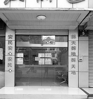 在拆迁办的大厅里,墙上还贴着不少标语,比如“征地拆迁的舞台,是骡子是马拉出来遛遛;创先争优的实绩,谁一般谁好让群众品品”。此外,还有“硬着头皮、厚着脸皮、磨破嘴皮、踏破鞋皮”。
