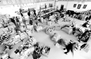 12月12日,江苏省太仓市一家快递公司业务员分拣双“十二”首批快件。