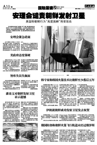 安理会谴责朝鲜发射卫星