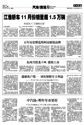 江淮轿车11月份销量超1.5万辆