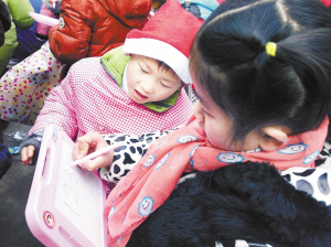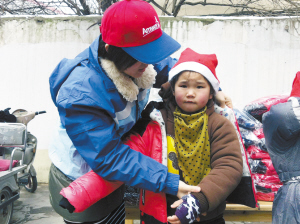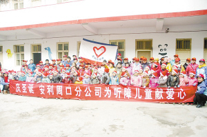 12月22日,本报60名小记者走进市残联听力语言康复中心,与这里的听障儿童手拉手庆圣诞、迎新年。现场,多才多艺的小记者表演了舞蹈、唱歌等节目,并向听障儿童赠送了自己挑选或制作的新年礼物。安利周口分公司的志愿者们为听障儿童每人赠送一副手套、一顶圣诞帽、一套棉衣和画板。臧秋花 文/图