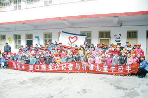 当天上午9时许,60名本报小记者与安利周口分公司的志愿者一起走进市残联听力语言康复中心。虽然早上天气非常寒冷,但是许多小记者在家长的陪同下早早地来到了活动地点,有的小记者拿着自己精心准备的小礼物生怕弄丢了,还有的小记者在为自己将要表演的节目做最后的练习,看得出他们是经过精心准备的。这时候,许多康复中心的儿童好奇地走了出来,开始,小记者和听障儿童之间虽然“跃跃欲试”,想要说点儿什么,但是,似乎还是有点儿放不开,不过,在活动开始后,他们很快就打成了一片。