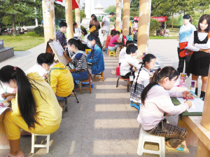 9月22日,由本报特别策划的“杜康·窖藏杯”首届小记者绘画大赛在周口市区滨河路民族广场隆重举行。本次大赛以“我爱我家 祝福祖国”为主题,让小记者借此平台,用眼睛去寻找,用心灵去发现,用画笔去描绘自己对家庭、对家乡、对祖国的爱和祝福。