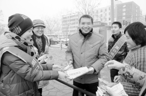 火车站广场上的“买晚报送饺子”活动刚刚开始,火车站不少工作人员就闻讯加入到活动队伍中。
