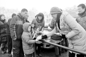 “这个活动让我觉得很温暖。” 当日上午,在火车站广场的活动现场,一位外地人拿到报纸和饺子后激动地说。