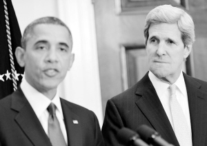 2012年12月21日,在美国华盛顿白宫,美总统奥巴马宣布提名约翰·克里(右)出任下任国务卿。
